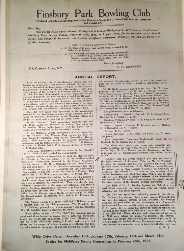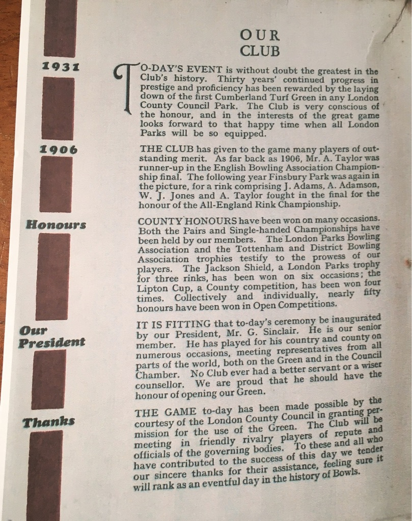 Established over a century ago (1900) the Finsbury Park Bowls club is one of the oldest bowls clubs in North-East London.